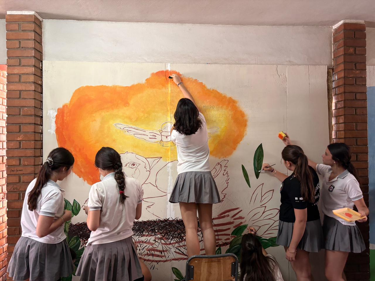 Los alumnos lijaron, enduyeron, prepararon fondos, mezclaron colores, corrigieron, borraron, volvieron a empezar. Luego llegó el momento de los trazos, las formas y finalmente… la magia: el color.